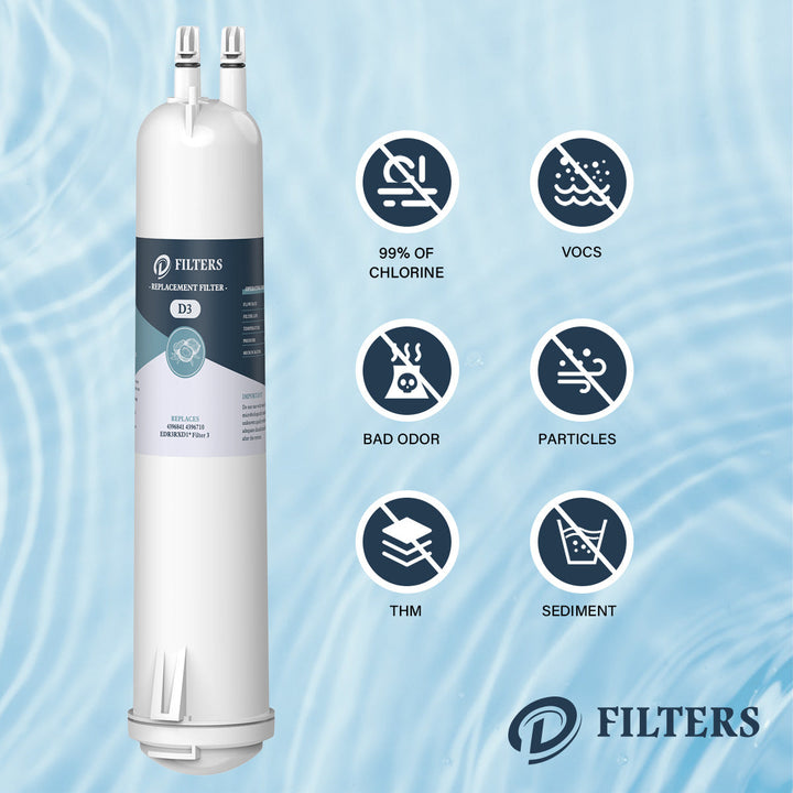 The Dfilters for Whirlpool EveryDrop EDR3RXD1 (AKA FILTER 3) takes over for the 4396710 and 4396841 filters and is used in side by side refrigerators by Whirlpool, KitchenAid, Maytag, Amana, Jenn-Air, Kenmore and others. The Whirlpool EDR3RXD1 filter creates better tasting water for drinking and making beverages as well as clean, clearer, healthy ice.