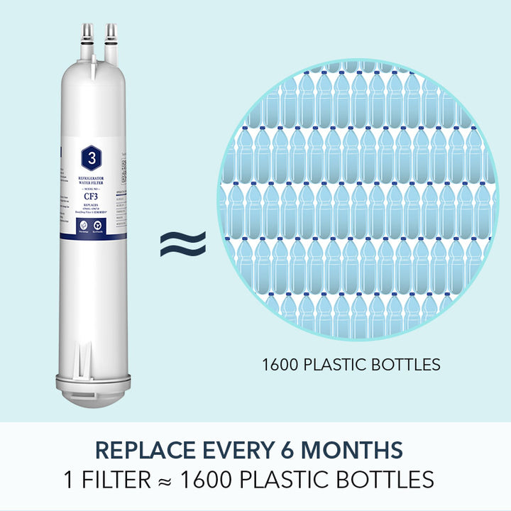 This refrigerator water filter 1 could reduce 24 impurities in water as well as other harmful contaminants. The fridge filter is compatible with Everydrop Water Filter 3, 4396841, 4396710 EDR3RXD1 Water Filter and 9083 Water Filter. We recommend to replace the filter every 6 months to ensure the filtration performance.